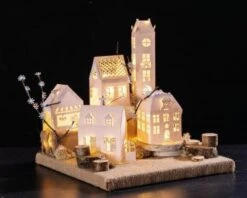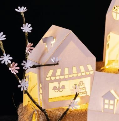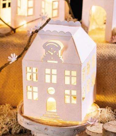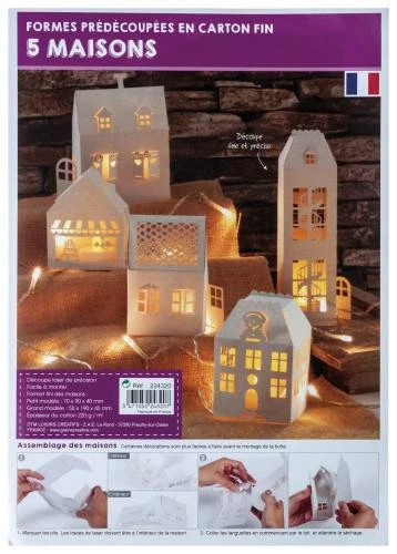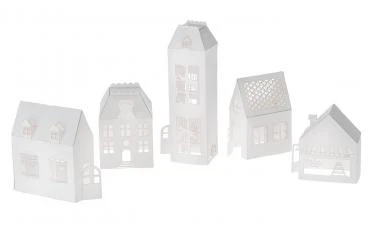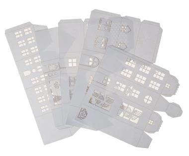 Alle Teile sind bereits vorgestanzt und steckfertig. Das Material reicht aus für 5 Häuser. Maße größtes Gebäude: ca. 52 x 42 x 194 mm, weiß, 5 Teile