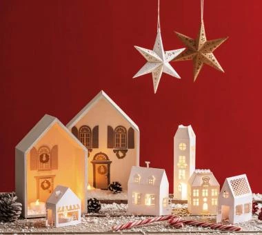 Häuser, Dekofiguren, Bäckerei, Konditorei, Wohnhaus, Licherdorf, Winterhäuser, Lichterdorf, Tischdekoration, Winterlandschaft, Fensterbank, Lichthäuser