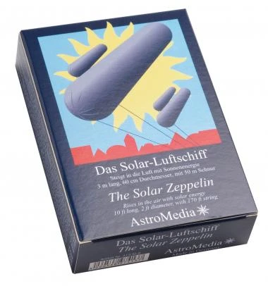 Zeppelinförmiger Riesenballon aus dünner schwarzer Folie. Die Sonne erwärmt die eingeschlossene Luft und lässt das Luftschiff aufsteigen. Komplett mit 50 m langer Leine – Achtung: Nicht loslassen, das Luftschiff kann tausende Meter hoch steigen!