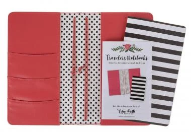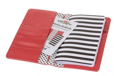 Das Travelers Notebook aus korallefarbenen Kunstleder kann ganz einfach den persönlichen Bedürfnissen angepasst werden. Im Inneren des Notebooks sind vier elastische Bänder zum Fixieren von Notizbüchern. Weitere Einstecktaschen sorgen für einen sicheren Halt für Visitenkarten, Fotos, Zettel usw. Zum Verschließen hat das Notebook außen ein Gummiband, so bleibt alles an seinem Platz.