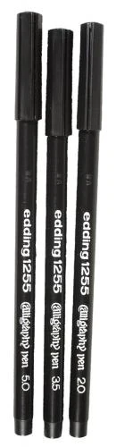 3 Fasermaler mit verschiedenen Kalligrafiespitze für ein schönes Schreiben auch auf porösen Oberflächen, besonders Terrakotta, Holz, Papier oder Leinwand. Die schwarze Pigmenttinte auf Wasserbasis trocknet schnell, ist extrem lichtbeständig, permanent und witterungsbeständig. Strichbreiten: ca. 2,0 mm, 3,5 mm, 5,0 mm, schwarz, 3er-Set