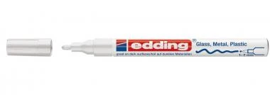 Lackmarker mit Rundspitze für stark deckendes, permanentes und wischbeständiges Schreiben und Dekorieren auf glatten, dunklen und transparenten Materialien. Hält auf Glas, Metall, Kunststoff und beschichtetes Papier. Die lackähnliche Pigmenttinte trocknet schnell, ist witterungsbeständig und extrem lichtbeständig. Strichbreite: ca. 1 – 2 mm, weiß, 1 Stück