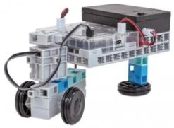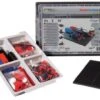 60 Bauteile bestehend aus Baublockteile, Blockbauzange, Stangen, Studuino® Board, Batteriebox, DC-Motor, Motorteile, USB-Kabel, Sensoranschlusskabel, Servomotor, Räder, schwarze Gummiringe, LEDs, Summer, IR-Fotoreflektor, Soundsensor, Lichtsensor, Drucksensor, Aufbewahrungsbox aus stabilen Kunststoff, inkl. Anleitungen, 1 Set