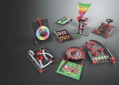 Ein Bausatz, gefüllt mit 8 Spielen zum Bauen, für einen spannenden Spieleabend. Kinder ab 7 Jahren können anhand einer Bauanleitung verschiedene Gesellschafts- und Geschicklichkeitsspiele wie z.B. Pinball, Roulette, Labyrinth usw. zusammenbauen. Keine Lust mehr auf Roulette? Dann kann das Spiel einfach umgebaut werden. 8 Modelle, 290 Teile