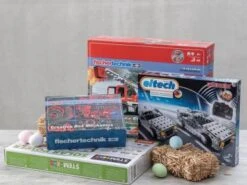 In der Creative Box Mechanics ist für alle Technik-Interessierten etwas dabei. 290 Bauteile: Zahnräder, Zahnstangen, Achsen, Schnecken sowie weitere Antriebselemente versprechen Bau- und Spielspaß zum Thema Mechanik. Der Bau von Seilwinden mit Seilrollen, Kettenantrieben oder verschiedenen Getriebearten ist dabei leicht umsetzbar. Geeignet ab 7 Jahren.