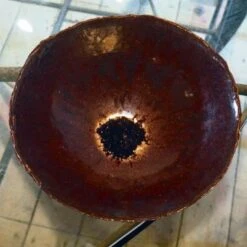 Tipp: Aventurin braungold glänzend dünn (1 – 2 mal) auftragen. Brennen bei ca. 1050°C. Nach dem Abkühlen Risse mit Tusche oder starkem Tee einfärben. Für ein grobes Netz bald einfärben, für feineres Craquelé bis zu einer Woche warten.