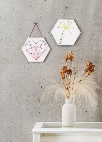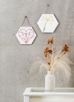 zum Hängen, Sechseckform, Maße: ca. 210 x 180 mm, ca. 5 mm stark, mit Bohrung: ca. 3 mm, 1 Stück