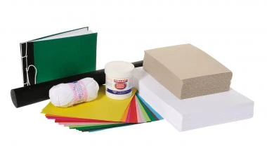 Inhalt: 50 Graupappen in DIN A5, 500 Blatt Kopierpapier in DIN A4, 100 Faltblätter/ Plakatpapier, ca. 200 x 200 mm, 1 Buchbinderleim 275 g, 1 Buchbinderleinen in schwarz, ca. 1 m x 500 mm, Handarbeitsgarn ca. 70 m