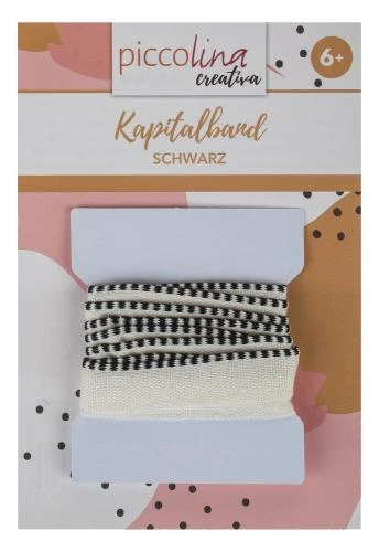 aus gewebter Baumwolle, zum Einkleben, Kapitalband schützt und kaschiert den Zwischenraum zwischen Buchblock und Buchrücken, Maße: ca. 1 m x 11 mm, schwarz/weiß, 1 Stück