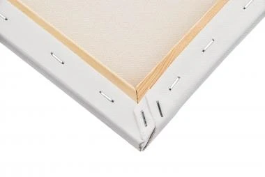 Keilrahmen mit 3-fach aufgetragener Universalgrundierung. Maltuch aus 100% Baumwolle (380 g/qm), auf der Rückseite getackert. Leistenmaße: Stärke 1,6 cm, Breite 2,4 cm. Beiliegende Holzkeile ermöglichen ein Nachspannen, nachdem die Fläche bearbeitet wurde.