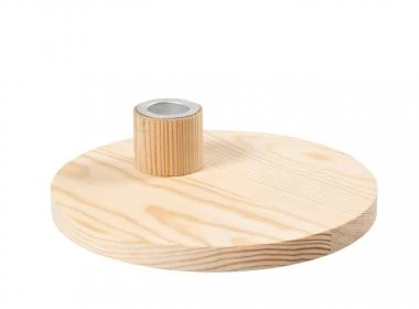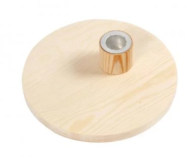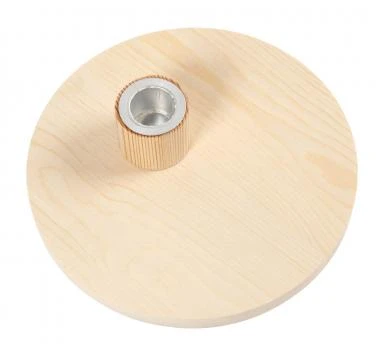 Kerzenhalter mit Metalleinsatz, aufgesetzt auf eine runde Holzplatte, natur, ohne Dekoration, Maße: ca. ø 160 x 40 mm, 1 Stück