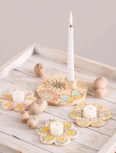 Holzkerzenhalter, Stabkerzenhalter, Kerzenständer, Tafelkerzenhalter