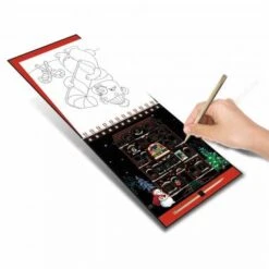 24 weihnachtliche Kratzseiten mit Farb- und Glitzereffekten, Punkt-zu-Punkt-Rätsel, versteckte Bildersuche und 24 Adventszahlen zum Ausmalen. Maße: ca. 210 x 165 mm, inkl. Bambusstick, 1 Stück