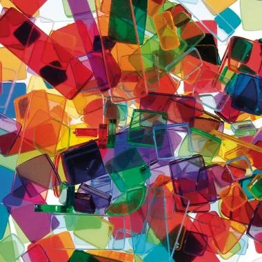 Luzy Acryl-Mosaik besteht aus transparentem Kunststoff. Super geeignet in Kombination mit Lichtquellen wie Lichterketten, Lampen und Kerzen. Durch eine Vielzahl an Formen lassen sich beliebige Muster erstellen. Unterschiedliche Formen und Größen, sehr leichtes Material, Maße: ca. 6 – 30 mm, ca. 2 mm stark, bunt-mix, 100 g = ca. 440 Stück, ausreichend für eine Fläche von ca. 240 x 240 mm
