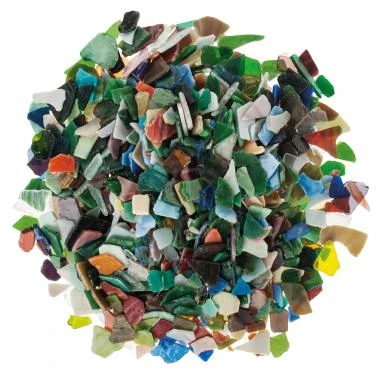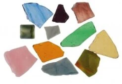 polierte Bruchstücke aus Glas mit glatten, abgerundeten Kanten, verschiedenen Farben und Formen, ca. 8 – 20 mm, ca. 2 – 3 mm, unverbindlich sortiert, bunt-mix, 2 kg = ca. 750 Mosaiksteine, ausreichend für eine Fläche von ca. 600 x 600 mm