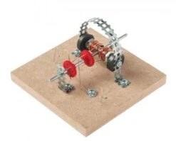 Der Elektromotor zeichnet sich durch vereinfachte Bauweise und eine garantierte Funktion aus. Der dicke Kupferlackdraht verhindert die übliche Knäuelbildung beim Wickeln der Spule und ermöglicht den Verzicht auf Lötarbeiten am Kollektor. Aufbau mit einfachen Werkzeugen im Klassenzimmer möglich.