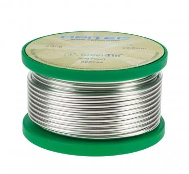 Sn97Cu3 (ISO 9453 Leg.Nr. 402) ist ein Standardweichlot aus Zinn und Kupfer ohne Flussmittel für die Elektronik und Kupferrohrinstallation.