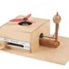 Sämtliche Funktionen sind über eine Handsteuerung mit Drucktaster und Kippschalter einfach zu steuern. Übersichtliche Anleitung mit Schablonen. Lieferung ohne 4,5 V Batterie. Erforderliche Arbeiten: Bohren, Treiben/Biegen, Sägen, Löten und Leimen.