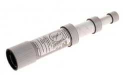 Bei diesem Modell handelt es sich um ein sogenanntes Galileisches oder Holländisches Fernrohr. Es werden nur zwei Linsen benötigt, dadurch ist der Bau äußerst unkompliziert. Bei einer ausgezogenen Länge von 370 mm bietet es dem Auge seines stolzen Besitzers eine 10-fache Vergrößerung. Zusammengeschoben ist das Fernrohr gerade 190 mm lang. Durch Verwendung genau ineinander passender, starkwandiger Kartonrohre ist das Fernrohr sehr stabil und liegt gut in der Hand. Komplett mit allen Kartonröhren, Kunststofflinsen (Brennweiten + 360 mm und – 35 mm)und einem ausführlichen Plan. Erforderliche Arbeiten: Anreißen, Schneiden, Kleben und Montieren. 1 Stück