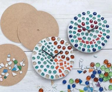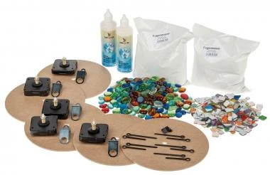 Mosaik-Wanduhr, wall clock, Mosaik-Uhr, Wohnaccessoires, Wanduhr, Küchenuhren, Dekoration, Mosaic Uhr, Bastelset, Mosaik-Set, Schulset, Schul-Set, Kinderbetreuung, Mosaiksteine