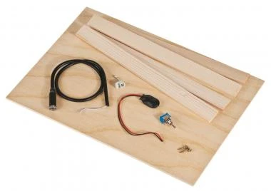 Einfacher Stromkreis (auch ohne Löten möglich) mit Kippschalter. Ausführliche Anleitung mit Schablonen. Erforderliche Arbeiten: Anreißen, Bohren, Sägen und Montieren. Lieferung ohne 9 V Block, ohne Deko.