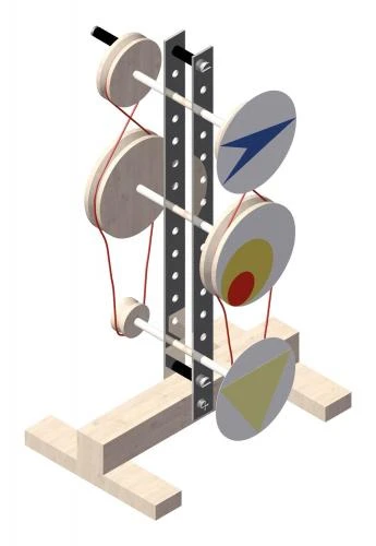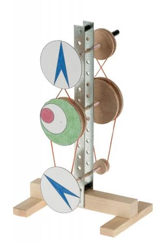 Die Zusammenstellung ermöglicht viele Anwendungs- und Experimentiermöglichkeiten: Die Beobachtung von sich drehenden Scheiben (Farb-Scheiben), die auf Holzräder geklebt werden. Veränderbar sind die Grundkonstruktion, die Farb-Drehscheiben, ihre Geschwindigkeit und ein Drehrichtungswechsel mithilfe der Gummibänder. Erforderliche Arbeiten: Montieren, Leimen/Kleben, Schneiden, Malen