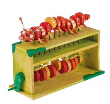 Diese Werkpackung verdeutlicht anschaulich die Funktion einer mechanischen Welle, bei der die periodische Bewegung eines Teiles auf die benachbarten Teile übertragen wird. Der Aufbau der tanzenden Raupe erfordert handwerkliches Geschick, präzises Arbeiten und Genauigkeit. Durch Betätigung der Kurbel, tanzt die Raupe in der jeweiligen vorgegebenen Geschwindigkeit auf und ab. Diese Werkpackung ist somit nicht nur ein lehrreicher, sondern auch optisch ansprechender Bausatz, der zusätzlich im Kunstunterricht kreativ gestaltet werden kann.