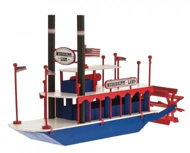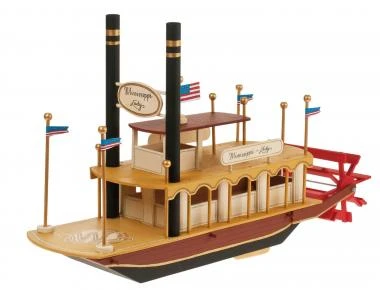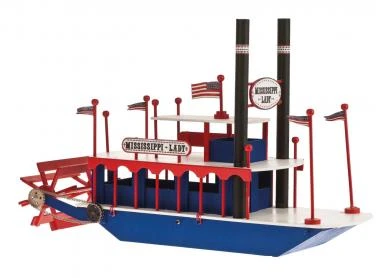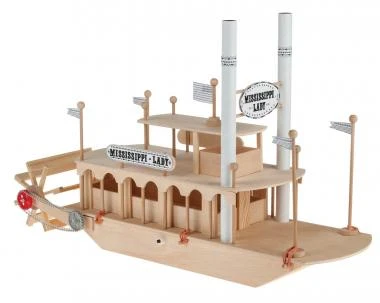 Schöner Holzbausatz der viele Techniken und Arbeiten beim Aufbau der schwimmfähigen Mississippi-Lady fordert. Eine zügige Fahrt wird mit dem im Rumpf befindlichen Getriebemotor über das Kettengetriebe erreicht. Durch die leichte Bauweise ist eine reichliche Zuladung möglich.