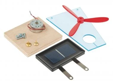 Unser Solar-Propeller zeigt auf einfache Weise das Zusammenwirken einer Solarzelle mit einem Solarmotor. Eine 400 mA Solarzelle in Verbindung (ohne Löten!) mit dem Solarmotor RF 300 bringt bei direkter Sonneneinstrahlung die aufgesteckte Luftschraube zum Drehen. Zum Aufbau benötigt man nur einen Kreuzschlitzschraubendreher, Kombizange und einen Gabelschlüssel SW 7. Aufbau im Klassenzimmer möglich! Bebilderte Anleitung.