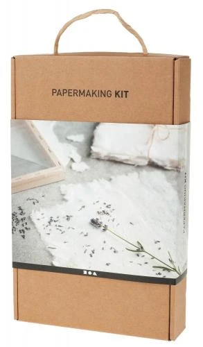 Materialset für die Herstellung von handgeschöpftem Papier.