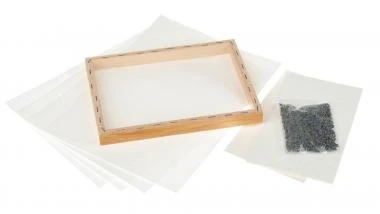 Formrahmen aus Holz zum Papierschöpfen (A5), 65 g Papierzellstoff, 4 Gautschfilze und 5 g Lavendelmischung, inkl. bebilderte Anleitung, 7-teilig