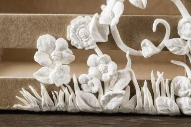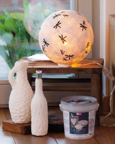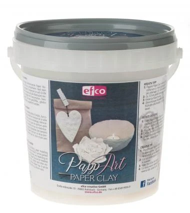 Gebrauchsfertige, weiche und lufttrocknende Papier-Modelliermasse. Leicht, filigran und frei zu modellieren. Nach dem Trocknen mit allen Farben zu bemalen. Trockenzeit je nach Größe und Stärke des Objekts (evtl. ca. 2 – 5 Tage)! Paper Clay kann auf alle Materialien modelliert werden. Wie z.B. Glas, Kunststoff, Metall, Styropor® und Paper-Art. Man kann sie prägen mit Texturmatten, Stempeln und mit Modellierwerkzeugen bearbeiten. Die PappArt-Masse ist rissarm, kann nach dem Trocknen bemalt, geschliffen und gebohrt werden. Silikonformen zum Modellieren können ebenso verwendet werden. 900 g, 1 Stück