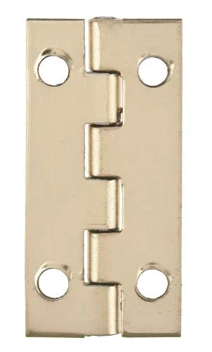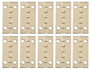 Eisenscharniere vermessingt mit Schraublöchern, Höhe x offene Breite. Maße: ca. 30 x 15 mm, 10 Stück
