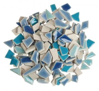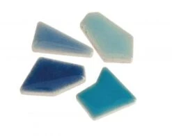 Porzellan glasiert, frostsicher, verschiedene Größen und Formen, ca. 10 – 30 mm, ca. 4 mm stark, unverbindlich sortiert, blau-mix, 200 g = ca. 180 Mosaiksteine, ausreichend für eine Fläche von ca. 150 x 150 mm