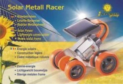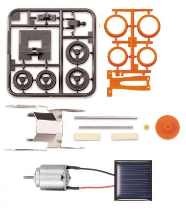 Metall-Kit für ein solarbetriebenes Fahrzeug mit Zahnradantrieb. Alle Bauteile sind bereits montagefertig. Aufbau ohne Werkzeug möglich. Bebilderte Schritt-für-Schritt-Anleitung. Ab 8 Jahren.