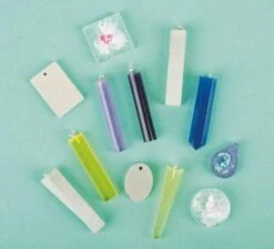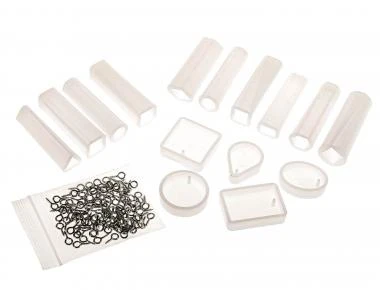 15 Formen ca. 25 – 45 mm lang, ca. 100 silberne Schraubverbinder, Materialbedarf: ca. 100 g Schmuck-Beton, ca. 120 g Raysin, ca. 100 g Gießpulver, ca. 55 g Resin, weiß, 16-teilig