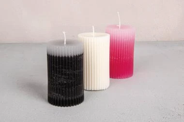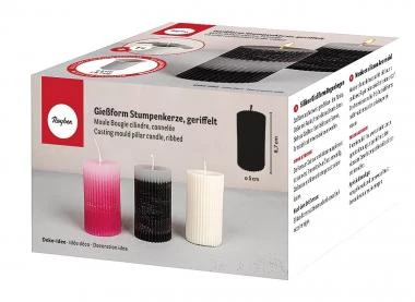 1 Form ca. ø 50 x 87 mm, inkl. 1 Dochthalter aus Metall, Materialbedarf: ca. 135 g Wachs, grau, 1 Stück