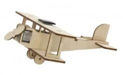 Der Solar-Doppeldecker Flying Star ist aus Birkensperrholz gelasert. Die exakt aufeinander abgestimmten Bauteile und die detaillierte Anleitung dieses Doppeldeckers garantieren einen unkomplizierten Aufbau. Geeignet ab 8 Jahren. Die Solarzelle ist bereits fest mit dem Motor verbunden, löten ist daher nicht erforderlich. Dank der kleinen aber sehr effizienten Solarzelle dreht sich der Propeller wie von Geisterhand, wenn das Modell an einem sonnigen Platz steht. Für den Aufbau des Modells werden ca. 15 – 20 Minuten benötigt. Somit eignet sich der Doppeldecker wunderbar auch als Bastelspaß während eines Kindergeburtstages, dem Unterricht oder eines Ferienprogrammes. Das Modell können die Kinder nach ihren Vorstellungen auch bemalen. Maße: ca. 160 x 150 x 65 mm, 1 Stück