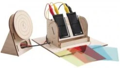 Das 24-seitige Handbuch informiert ausführlich über den Stand der Technik und bietet zudem interessante Experimente zur Photovoltaik. Messwerte können optisch oder mit einem optionalen Multimeter erfasst werden. Um die Solarzellen mit dem passendem Licht zu beleuchten, eignet sich am besten direktes Sonnenlicht oder alternativ im Inneren eine 20 Watt Halogenlampe. Ungeeignet hingegen sind Energiesparlampen und LEDs, da diese Lichtquellen eine für Solarzellen ungeeignete Lichtfrequenz erzeugen. 1 Stück