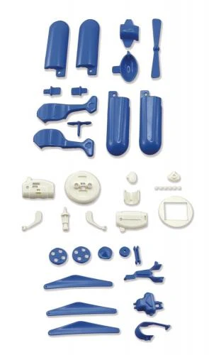 Kunststoffspritzteile in blau und weiß. Zum Aufbau wird nur ein Seitenschneider oder Cuttermesser benötigt. Bebilderte Schritt-für-Schritt-Anleitung für jedes Modell. Ab 10 Jahren. 1 Stück