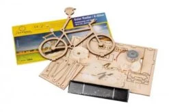 Ob als E-Bike oder als normales Fahrrad aufgebaut (man kann entweder die Luftpumpe oder den Akkupack in den Fahrradrahmen kleben)ist dieses solarbetriebene Modell aus gelaserten Sperrholzteilen ein echter Hingucker. Wenn ausreichend Sonnenlicht auf die großzügig dimensionierte Solarzelle trifft, beginnt der Biker ordentlich in die Pedale zu treten.