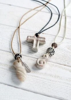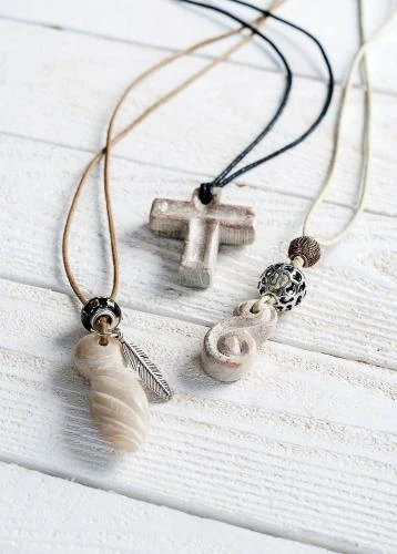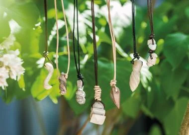 Aus vorgearbeiteten Speckstein-Rohlingen zaubern Sie wunderschöne Schmuckstein-Anhänger. Herz, Donut, Kreuz und Amulett, jede Form wird durch Ihr Zutun zu einem Unikat.