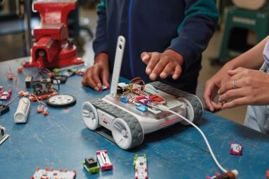 Das Topper Kit vereint die technischen Gestaltungsmöglichkeiten von littleBits mit dem Spaß am Programmieren des Sphero RVR. Dieser kann mit dem Topper Kit weiterentwickelt werden, z.B. durch einen mechanischen Arm, IR-Sensoren oder Näherungssensoren, um sicherzustellen, dass der RVR Hindernisse erkennt und umgehen kann. Der Sphero RVR Roboter kann außerdem als Stromquelle genutzt werden, um littleBits Erfindungen mit Strom zu versorgen und diese mobil zu machen. Außerdem ist es durch den littleBits micro:bit-Adapter und Microsoft MakeCode möglich, sowohl den Sphero RVR als auch die Bits auf derselben Plattform zu programmieren. Je RVR Topper können bis zu 4 Lernende gemeinsam tüfteln. Lieferung ohne Sphero RVR Roboter. Geeignet für Kinder ab 8 Jahren.