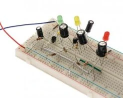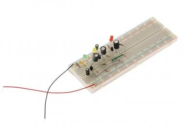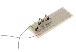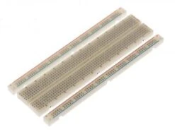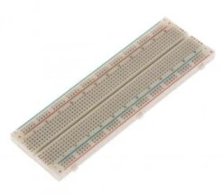 Steckplatine aus Kunststoff für einen schnellen lötfreien Auf- und Abbau elektrischer und elektronischer Schaltungen. Verteiler (links und rechts) abnehmbar. Die Kontaktpunkte sind waagerecht und senkrecht gekennzeichnet. Polzahl gesamt 830 (Terminal 630 + Verteiler 200), Rückseite selbstklebend. Maße: ca. 165 x 55 x 9 mm, 1 Stück