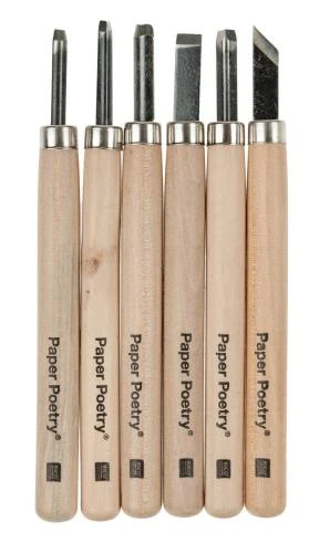 6 verschiedene Schnitzwerkzeuge zum Bearbeiten der Stempelgummis,