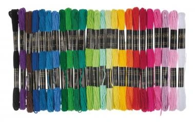 100% Baumwolle, 25 verschiedene Farben je 8 m in weiß, mintgrün, rosa, gelbgrün, gelb, pink, hellgrün, flieder, apfelgrün, rotpink, blau, sonnengelb, türkis, dunkelgrün, orange, graublau, rot, saftgrün, grün, mittelblau, dunkelrot, dunkelblau, braun, lila und schwarz, 25er-Set