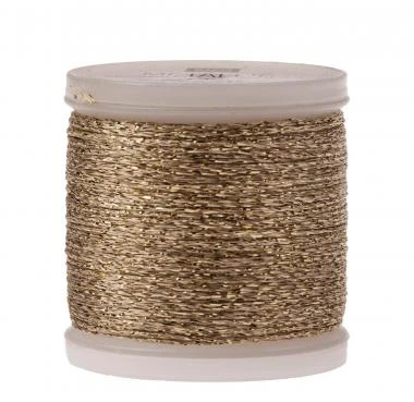 45% Polyamid, 55% metallisiertes Polyester, waschbar bis 60° C, Maße: ca. 50 m lang, 0,5 mm stark, metallic-gold, 1 Stück