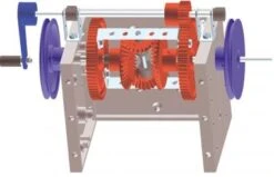 Tischbohrmaschine, Handmixer, Seilwinde mit Schnecken-, bzw. Stirnradgetriebe, Sickenmaschine, Waagrecht-Stoßmaschine für Schubkurbelgetriebe. Drechseleinrichtung, Dynamomaschine, Differentialgetriebe, Handbohrmaschine als Beispiel für einfaches Schaltgetriebe. 1 Stück