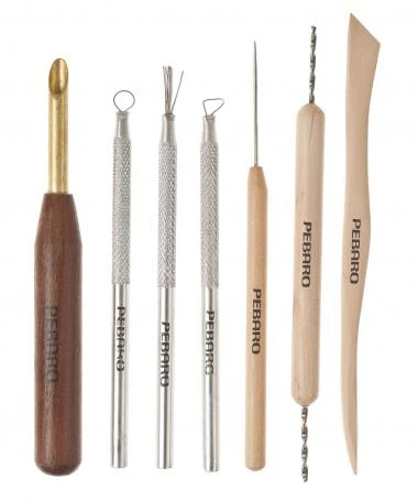 Modellierset Metall/Holz, zum Bearbeiten von Ton oder ähnlichen Modelliermassen. Maße: ca. 120 – 150 mm lang, 7-teilig