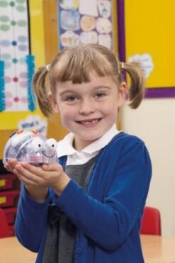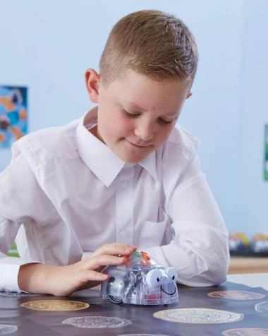 Der Blue-Bot verfügt auf seinem Rücken über die Richtungstasten Vorwärts, Rückwärts, Links- und Rechtsdrehung. Kinder können damit Bewegungsabfolgen speichern und mit „GO“ umsetzen. Der Blue-Bot führt diese Bewegungen dann nach und nach aus. Kinder planen den Weg zu einem vorgegebenen Ziel. Diese einfache Planung der Bewegungsabläufe entspricht bereits der algorithmischen Programmierung. Die transparente Hülle ermöglicht Kinder einen Blick auf die Technik im Inneren des leuchtenden Blue-Bot. Mithilfe einer kostenlosen App (iOS, Android und Windows 10 kompatibel) kann der kleine Roboter sogar über Bluetooth mit einem Tablet oder PC gesteuert werden. Lieferung inkl. wiederaufladbarem Akku (Lithium-Polymer-Akku-Pack, DC 3,7 V) und USB-Ladekabel, Roboter mit Sound. Geeignet für Kinder ab 3 Jahren. Maße: ca. 130 x 99 x 70 mm, 1 Stück